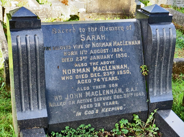 Bomb Aimer - P/O John MacLennan RAFVR (127119), aged 29. Buried Cathays Cemetery, Cardiff, Glamorganshire.