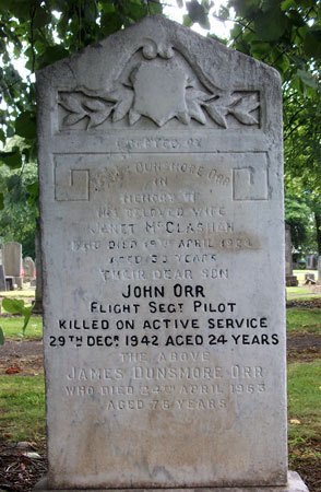 Pilot - F/Sgt John Orr RAF (655146), aged 24, of Paisley, Renfrewshire. Buried Hawkhead Cemetery, Paisley, Renfrewshire.
