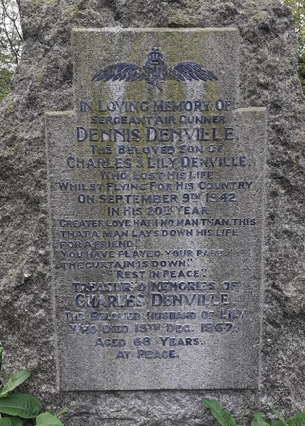 Rear Gunner - Sgt Dennis Charles Alfred Peter R Denville RAFVR (1052819), aged 20. Buried Stoney Royd Cemetery, Halifax, Yorkshire.