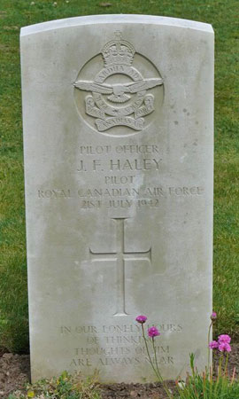 Pilot - P/O James Francis Haley RCAF (J/15272), aged 26, of Saint John, New Brunswick, Canada. Buried Stoneykirk Cemetery, Wigtown, Scotland.