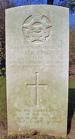 Pilot - F/Sgt David Reid Cox RCAF (R/65319), aged 23, of Isaac's Harbour, Nova Scotia, Canada. Buried Harrogate Stonefall Cemetery, Yorkshire.