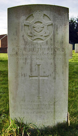 Pilot - Sgt Bernard Rinian Roy Rutherford RAAF (406540). Aged 22. Buried Leconfield Churchyard, Yorkshire.