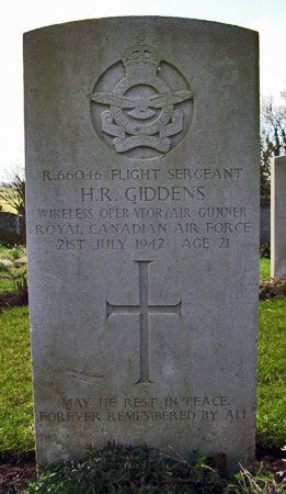 Wireless Operator / Air Gunner - F/Sgt Harold Richard Giddens RCAF (R/66046), aged 21, of Niagara Falls, Ontario, Canada. Buried Newton on Ouse Churchyard, Yorkshire.