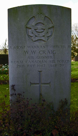Air Gunner - F/Sgt William Warren Craig RCAF (R/63057), aged 29, of Moncton, New Brunswick, Canada. Buried Newton on Ouse Churchyard, Yorkshire.