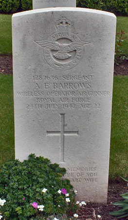 Wireless Operator / Air Gunner - Sgt Albert Edwin Barrows RAFVR (1287636), aged 22, of North Kensington, London. Buried Gunnersbury Cemetery, Kensington, London.
