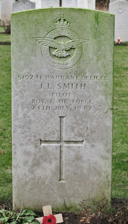 Pilot - W/O John Lawrence Smith RAF (519241), aged 26. Buried Finningley Churchyard Extension, Yorkshire.