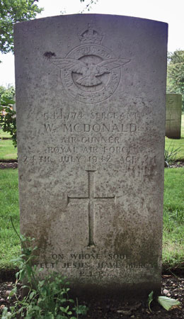 Air Gunner - Sgt William McDonald RAF (544774), aged 24, of Paisley, Renfrewshire. Buried Finningley Churchyard Extension, Yorkshire.
