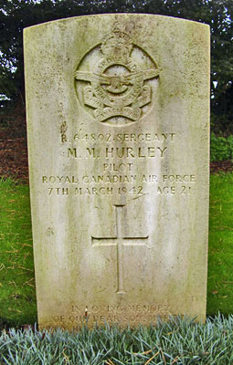 Pilot - Sgt Martin Maher Hurley RCAF (R/64892), aged 21, of Barnaby River, New Brunswick, Canada. Buried Brandesburton Churchyard, Yorkshire.