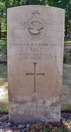 Passenger(/Observer)? - AC2 Constantine Philip Voltos RAFVR (919294), aged 21, of Kensington, London. Buried Brookwood Cemetery, Surrey.
