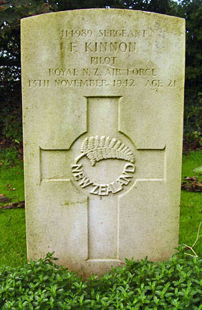 Pilot - Sgt Francis Kinnon RNZAF (NZ.414989), aged 21, of Kihikihi, Auckland, New Zealand. Buried Brandesburton Churchyard, Yorkshire.