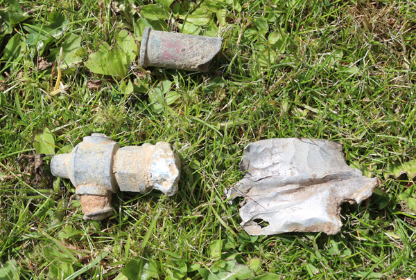Historians Eric Barton, Ken Reast and Albert Pritchard joined local aviation expert Rodney Robinson in Summer 2008 in obtaining permission from the landowner and they located small fragments of the aircraft to confirm the location. The photograph above shows small fragments that were retained by Eric following his visit.