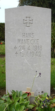 Wireless Operator - Uffz Hans Maneke, of Berlin, killed. Born 26/04/1918. Buried Thornaby on Tees Cemetery.