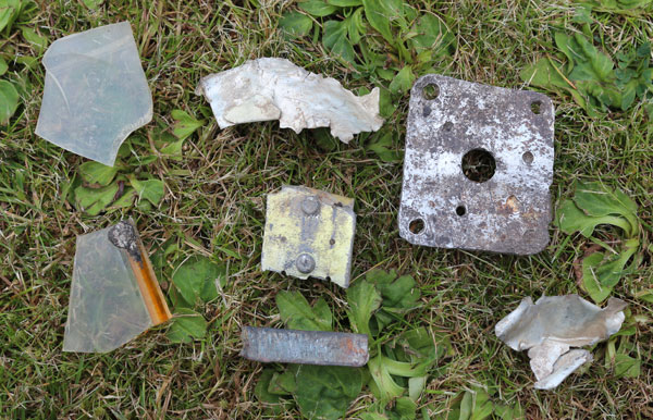 Historian Eric Barton somehow obtained a few fragments of the aircraft following the 1997 re-discovery of the crash site, these items are currently with me awaiting a new home and are shown in the photograph above,