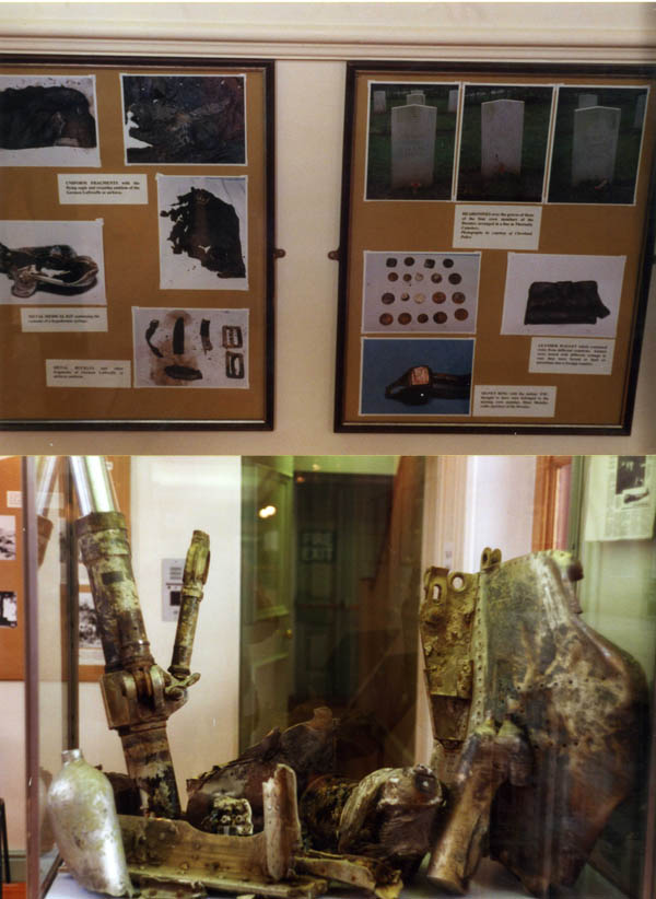 Some of the wreckage that was recovered in 1998 has since been placed on display within a small museum at Kirkleatham with information boards. The photographs above show part of this collection. Further items including a large undercarriage leg have been placed on display at the Warplane Wreck Investigation Group museum at Fort Perch, Wirral and the photograph shown below was taken by David Thompson.