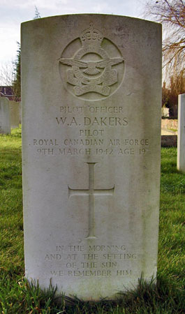 Pilot - P/O William Arthur Dakers RCAF (J/8173), aged 19, of Victoria, British Columbia, Canada. Buried Leconfield Churchyard, Yorkshire.