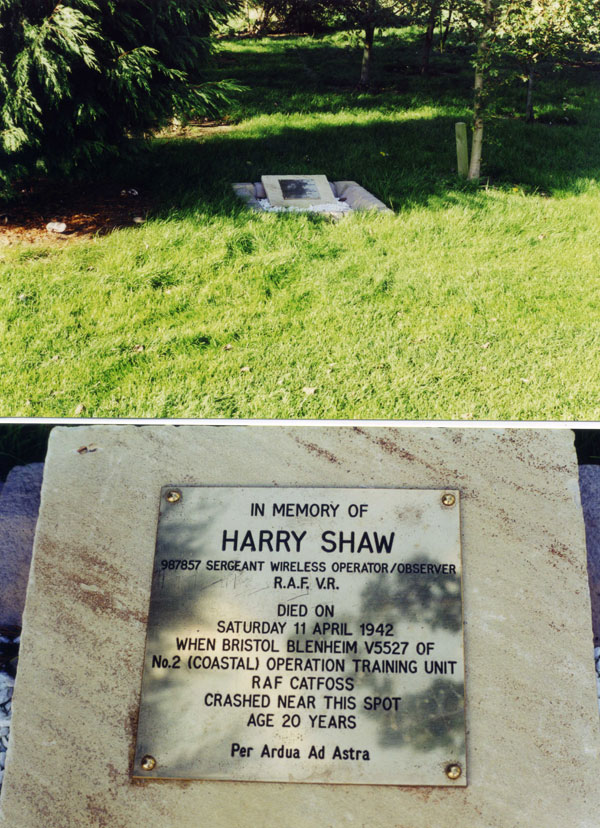 Wireless Operator / Observer - Sgt Harry Shaw RAFVR (987857), aged 20, of Mexborough. Buried Mexborough Cemetery, Yorkshire.