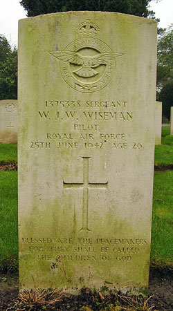 Pilot - Sgt William Joseph Walter Wiseman RAFVR (1375338), aged 26, of Bromley, Kent. Buried Ripon Cemetery, Yorkshire.