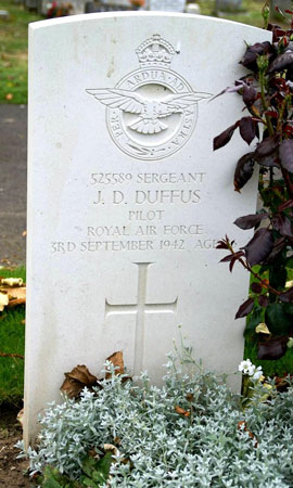 Pilot - Sgt Jack Duncan Duffus RAF (525589), aged 26, of West Radcliffe. Buried Chevington Cemetery, Northumberland. Died soon after of injuries.