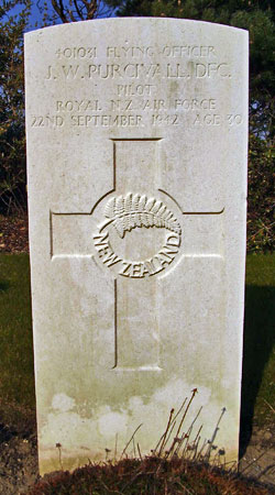 Pilot - F/O John William Purcivall DFC RNZAF (NZ.401031), aged 30, of New Plymouth, Taranaki, New Zealand. Buried Harrogate Stonefall Cemetery, Yorkshire.
