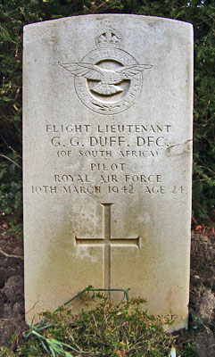 Pilot - F/Lt George Gordon Duff DFC RAFVR (89378), aged 24, of South Africa. Buried Driffield Cemetery, Yorkshire.