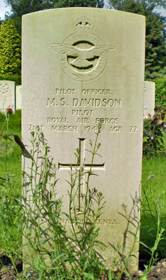 Pilot - P/O Malcolm Stuart Davidson RAFVR (65981), aged 22, of Nairobi. Kenya. Buried Darlington West Cemetery, Durham.