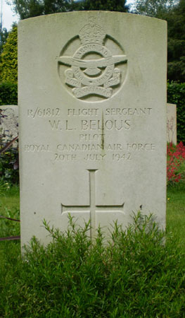 Pilot - WO1 Wesley Leonard Belous RCAF (R/61812), aged 23, of Stenen, Saskatchewan, Canada. Buried Darlington West Cemetery, Co.Durham.