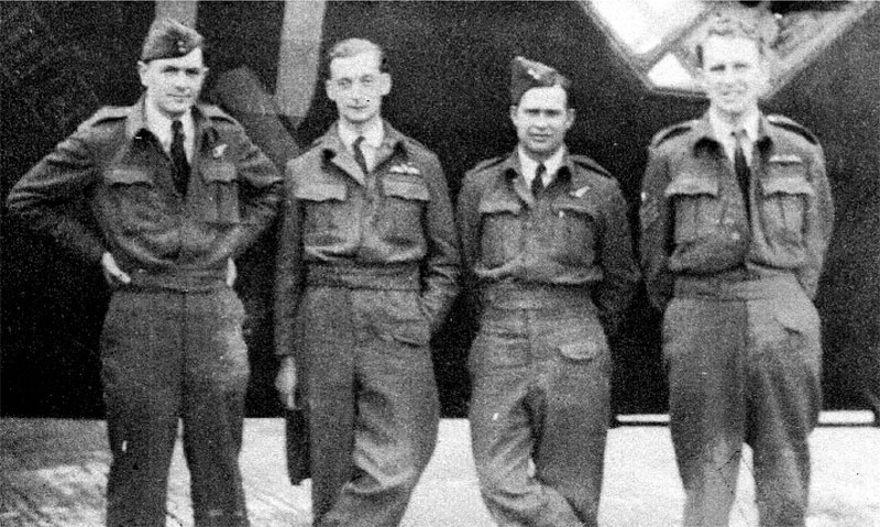 Four members of this crew, left to right, Morgan, Sellers, Empey and Davenport, taken at Snaith in 1942.