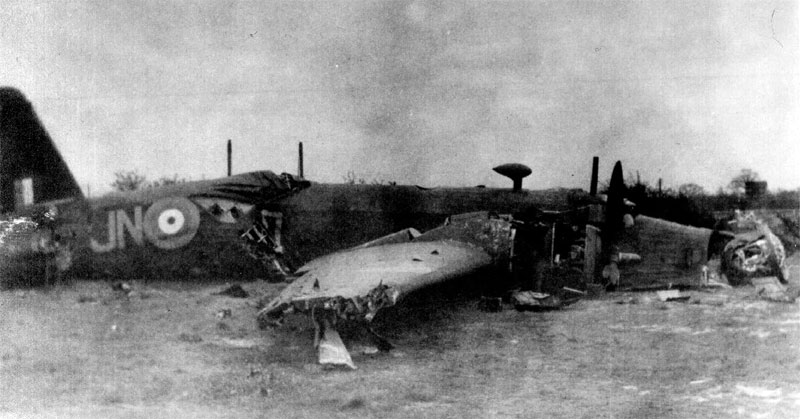 On the night of 5th / 6th May 1942 the crew of this 150 Squadron aircraft were tasked with flying an operational flight to Stuttgart where they bombed the aerodrome. The front turret had become unservicable during the course of the flight and by the time the aircraft reached Yorkshire it was also suffering starboard engine trouble. An oil leak within the front turret was splattering the cockpit glazing with oil and obscured his vision. With the aircraft flying at 2,000 feet at the time the starboard engine then failed, by the time the pilot had feathered the propeller on the failed engine and regained control the aircraft was down to just 200 feet above the ground. He was unable to reach an airfield so made a force-landing in a field near Askern, to the north of Doncaster, at 02.15hrs. The aircraft was badly damaged and two of the airmen sustained leg injuries that saw them treated in Doncaster Royal Infirmary.