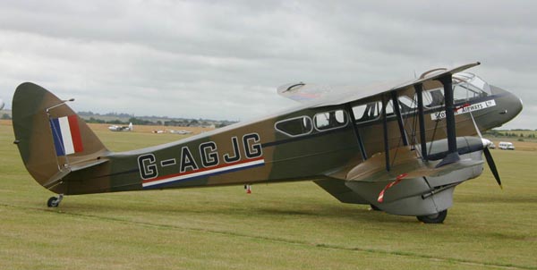 This Domonie was built at Hatfield by de Havilland as a Dominie MkI to Contract B.104592/40 (a batch of 150 aircraft) and given the serial X7344. It was initially taken on charge by 9 MU at Cosford on 20th March 1941 and was then delivered to 1 Camouflage Flight, at Hendon, on 10th May 1941 who then moved to Stapleford Tawney on 1st June 1942. Officially on paper it was struck off charge following the incident at Doncaster on 3rd June 1942. The aircraft was transported by road to Air Taxi's Ltd at Barton for assessment who then re-assessed it as havin the lesser Cat.B damage and it was sent for a repair in works. On 10th October 1942 it was flown to 18 MU at Dumfries to be placed into storage. A couple of weeks later it was transferred to Scottish Airways Ltd and allotted the civilian registration G-AGJG, it was used to supply the Scottish Islands, including the main naval base at Scapa Flow through-out the rest of the war. On 1st February 1947 it was registered to the BEA Corporation and based at Northolt. On 14th October 1948 it was registered to ADIE Aviation Ltd. at Croydon. On 10th January 1949 it was registered to Mediterranean Air Services Ltd. also at Croydon. On 4th August 1950 it was registered to ADIE Aviation Ltd., still at Croydon. On 9th June 1953 it was registered to Ernest Arthur Taylor at Epsom. On 2nd April 1954 it was registered to I.A.S. (London) Ltd. at London Airport. On 13th March 1953 it was registered to Thomas Hutton Marshall at Christchurch. On 26th September 1960 it was registered to Ernest Percy Jones at Christchurch. On 18th December 1961 it was registered to Thomas Hutton Marshall at Christchurch. On 11th May 1962 it was registered to Gerald Austin Dommett at Christchurch. On 8th June 1967 it was registered to John Alexander Galt at Iver Heath. On 25th March 1968 it was registered to Aerial Enterprises Ltd. at Booker. On 3rd January 1984 it was registered to Emmanuel Wein at Duxford and on 20th March 1986 it was registered to M.J. & D.J.T. Miller at Duxford.