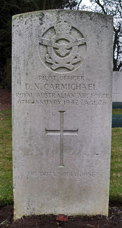 Second Pilot - P/O David Norris Carmichael RAAF (403040), aged 26, of Mosman, New South Wales, Australia. Buried Holme on Spalding Moor Churchyard, Yorkshire.