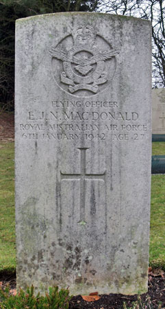 Rear Gunner - F/O Edward John Norman MacDonald RAAF (404346), aged 27, of Brisbane, Queensland, Austrlia. Buried Holme on Spalding Moor Churchyard, Yorkshire.