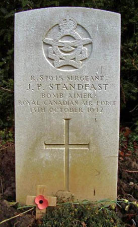 Bomb Aimer - F/Sgt John Percy Standfast RCAF (R/87945), aged 33. Of Big Bend district, British Columbia, Canada. Buried Driffield Cemetery, Yorkshire (grave 6182).