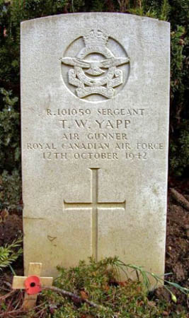 Air Gunner - Sgt Thomas Walter Yapp RCAF (R/101059), aged 24. Of Seattle, Washington, USA. Buried Driffield Cemetery, Yorkshire (grave 6188).