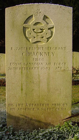 Second Pilot - F/Sgt Charles Hackney RCAF (R/72081), aged 20, of Toronto, Ontario, Canada. Buried Barmby Moor Churchyard, Yorkshire.