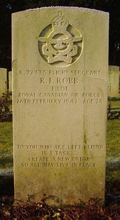 Pilot - F/Sgt Reginald Francis Robb RCAF (R/72335), aged 25, of Frankford, Ontario, Canada. Buried Barmby Moor Churchyard, Yorkshire.