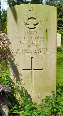 Pilot - P/O Cecil Frank Ferris RAFVR (106220), aged 33, of Regents Park, London. Buried Western Cemetery, Darlington, Durham.