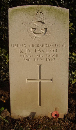 AC1 Kenneth Darwin Taylor RAFVR (1131423), aged 21. Buried Driffield Cemetery, Yorkshire (6212).