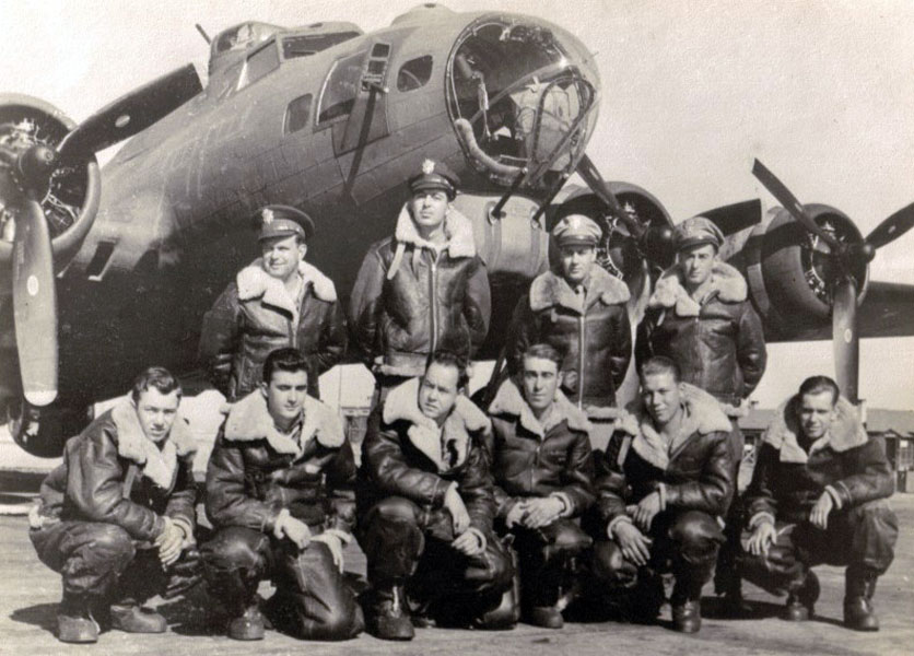 The crew of B17 42-31098. Left to right Back Row.. Kaufman, Robinson, Fitzgerald, Barrett.