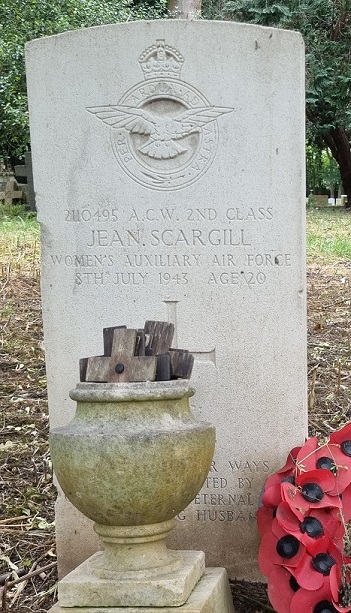 Ground casualty - ACW2 Jean Scargill WAAF (2110495), aged 20, husband of Marske by the Sea. Buried Kirkleatham Churchyard, Yorkshire.