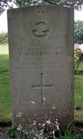 Pilot - Sgt Thomas William Hodgson Dalziel RAFVR (1432841), aged 20, of Headingley, Leeds. Buried Finningley Churchyard, Yorkshire.
