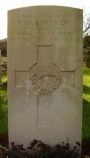 Pilot - F/O Terence McKinley DFC RNZAF (402544), aged 21, of Wellington City, New Zealand. Buried Harrogate Stonefall Cemetery, Yorkshire.