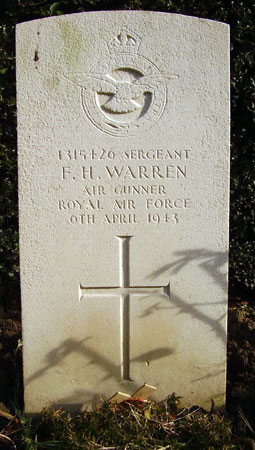 Air Gunner - Sgt Frederick Hensher Warren RAFVR (1315426), aged ? Buried Driffield Cemetery, Yorkshire.