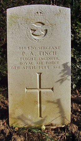 Flight Engineer - Sgt Peter Arnaud Tinch RAF (616470), aged 22, of Edinburgh. Buried Driffield Cemetery, Yorkshire.