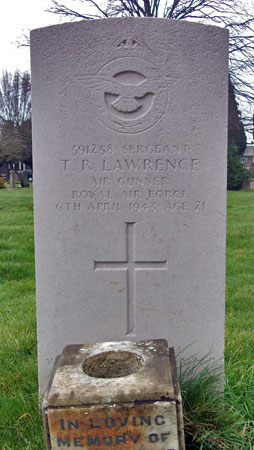 Air Gunner - Sgt Thomas Raymond Lawrence RAF (591258), aged 21, of Middlesbrough. Buried Acklam Cemetery, Middlesbrough, Yorkshire.