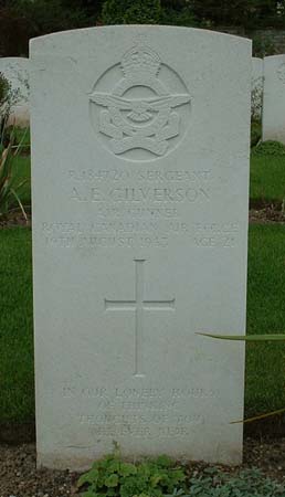 Air Gunner - Sgt Albert Edward Gilverson RCAF (R/184720), aged 21, of Toronto, Ontario, Canada. Buried Harrogate Stonefall Cemetery, Yorkshire (C/A/6).