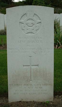 Pilot - F/O Murray Wallace Bonner RCAF (J/21902), aged 23, of Miniota, Manitoba, Canada. Buried Harrogate Stonefall Cemetery, Yorkshire (C/A/5).