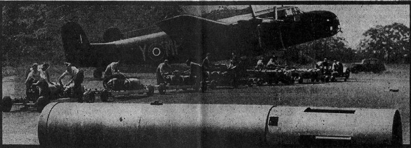 Halifax DK193 was photographed being loaded with bombs earlier in its life at 76 Squadron. Just after midnight on 31st August 1943 the aircraft was in the process of taking off for an operational flight to bomb Monchengladbach, as it picked up speed a tyre burst and the pilot partially lost control of the aircraft. It crashed off the just beyond the runway probably with the undercarriage collapsing, a fire broke out and this later caused the full bomb load to explode. The crew all escaped the fire before it took hold and were not injured.