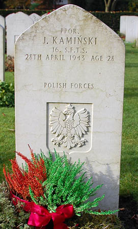 Pilot - F/O Jozef Kaminski PAF (P/1758), aged 28, buried Newark Cemetery, Nottinghamshire.