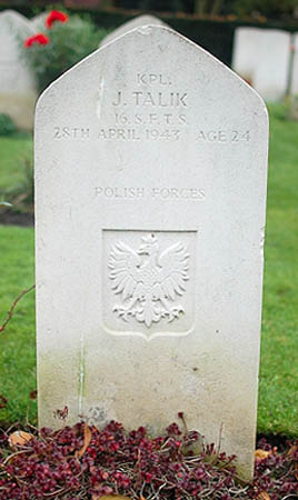 Pilot - LAC Jan Talik PAF (P/784257), aged 24, buried Newark Cemetery, Nottinghamshire.
