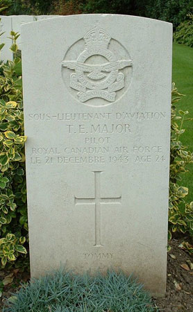 Thomas Major was born on 30th July 1919 at Toronto, Ontario, Canada and was the son of William John and Rose (nee Bertrand) Major. After leaving high school he worked as stenographer. He enlisted for RCAF service way back on 10th November 1939 in Kingston, Ontario but for ground duties and he served as an office clerk, his war up until that date would have been reasonable safe. Probably wanting to do more he remustered as aircrew and then begun training as a pilot in January 1942, being awarded his Pilot's Wings on 25th September 1942 and also a commission on the same date. He was posted to the UK soon after and over the coming months would train at 15 (P)AFU, 19 OTU and 1664 HCU. He was briefly posted to 408 Squadron on 16th November 1943 but twelve days later was posted to 1679 H.C.Flt to convert to fly the Lancaster type.